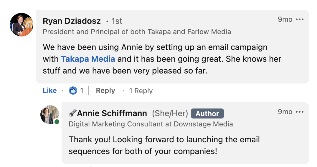 You don't really know where a company's strengths lie until you see what they regularly get hired to do. This can help you understand if you want to work with this company to solve your marketing issues. So as the curtain draws on 2022, here's a look back on the kind of work that Annie Schiffmann did with Downstage Media, and how it helped clients get the social media marketing, email marketing, or overall branding results they were looking for.