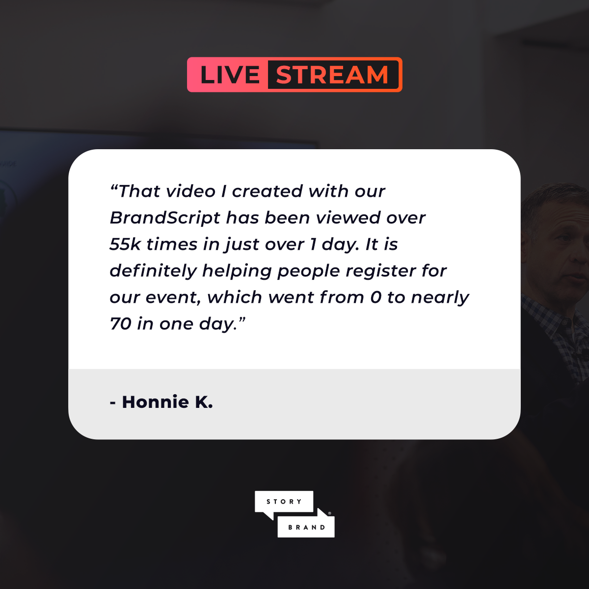 Attend a StoryBrand Marketing Livestream: Learn to craft your BrandScript with expert guidance.