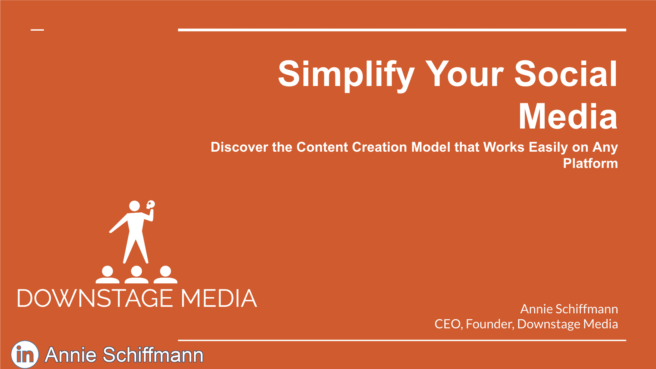 So many people are paralyzed by what they should put on social media that they don’t put anything at all. “I hate social media” they tell me after I give keynotes. Here you’ll find out how by employing the concepts covered in the Simplify Your Social Webinar you can have a social media presence without the social media pressure.